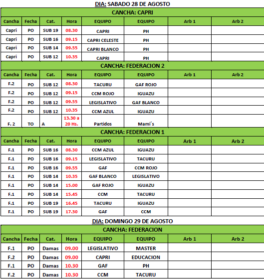Esta será la actividad del fin de semana del 28 y 29 de agosto. Fuente: Federación Misionera de Hockey